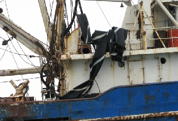 Manguera plana de gran diámetro, a través de la cual se bombea pescado desde la bomba submarina ubicada en la red, hacia las bodegas del barco.
